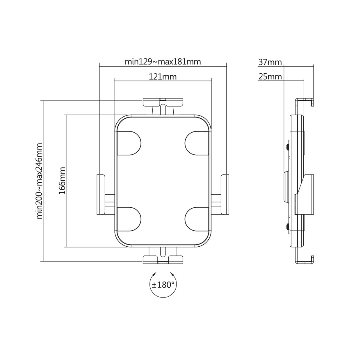 Le mécanisme de verrouillage intégré protège la tablette contre tout retrait non désiré, ce qui est particulièrement appréciable dans les espaces à forte affluence. Le support est universel pour la plupart des tablettes avec une diagonale de 7,9" à 11" et est conçu pour une fixation murale rapide et sécurisée.