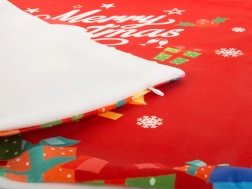 L’imprimé joyeux avec le Père Noël, des cadeaux et des flocons de neige transforme le salon ou la chambre en un cocon de Noël chaleureux.