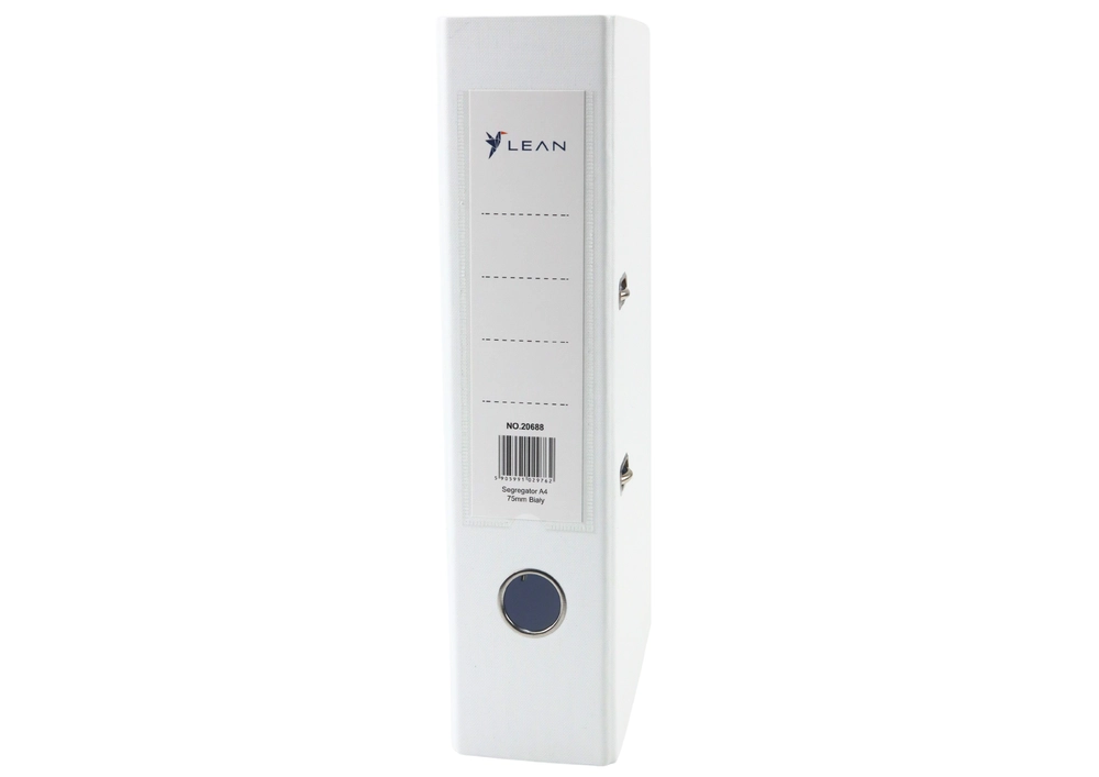Classeur A4 parfait avec dos large de 75 mm. Il se distingue par son design simple et épuré en blanc, ce qui en fait un accessoire idéal pour tout environnement. Il garde vos documents organisés et en sécurité.