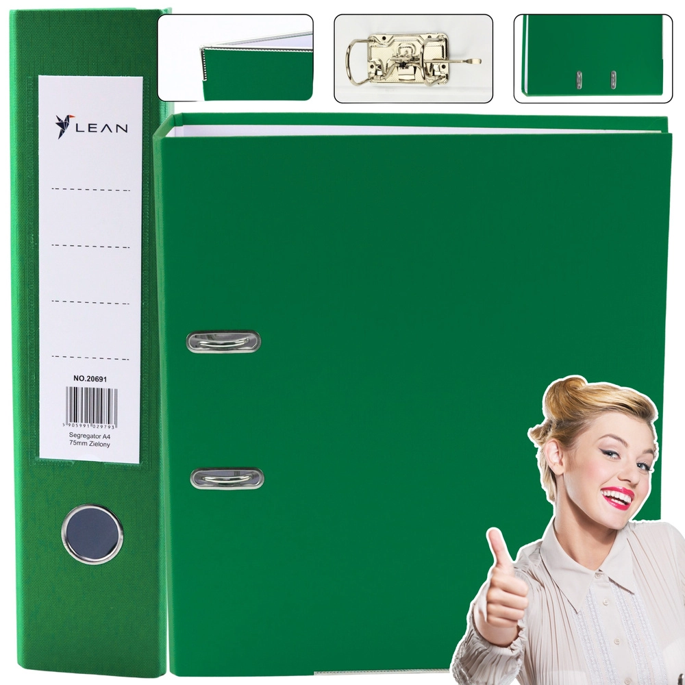Gardez vos papiers en ordre avec ce classeur à levier A4 polyvalent dans une teinte verte moderne. Son large dos de 75 mm accueille des volumes importants de documents, tandis que la structure rigide en carton d’environ 2 mm (1200 gsm) résiste à un usage quotidien au bureau comme à la maison.