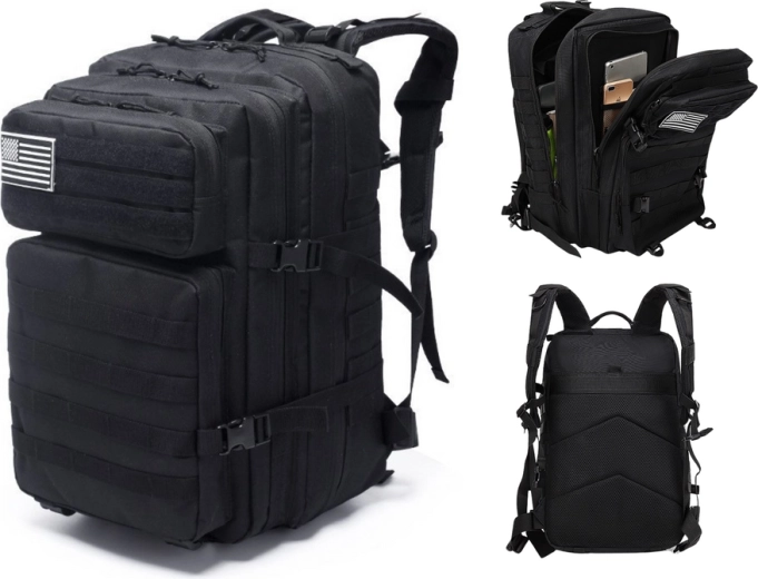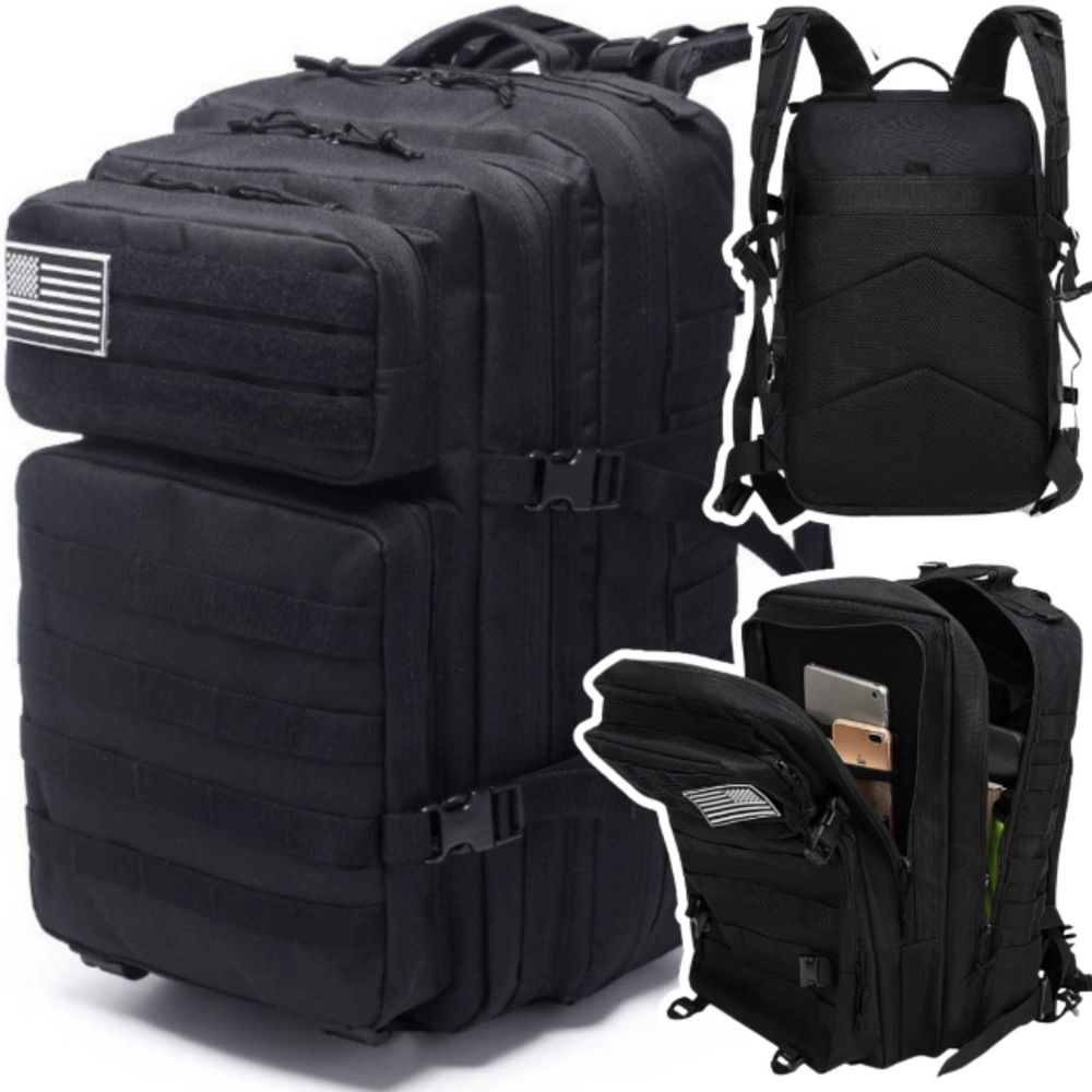Sac à dos tactique 40–60 l polyvalent en noir pour la randonnée, les sorties et l’usage quotidien. Il offre un polyester résistant, un système de portage ergonomique, une ventilation du dos et un système MOLLE modulaire pour augmenter la capacité. Grâce aux sangles de compression, à la construction déperlante et à une organisation intérieure astucieuse, vous transporterez en toute sécurité tout le nécessaire.