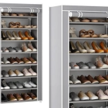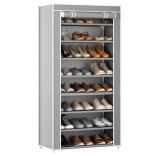 Étagère à chaussures 8 niveaux avec housse anti-poussière – gris