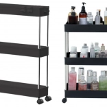 Étagère mobile universelle avec trois plateaux spacieux, idéale pour gagner de la place et réorganiser rapidement la maison. Les roulettes avec frein assurent un déplacement facile et une excellente stabilité une fois en place, tandis que le design noir élégant s’intègre parfaitement aux intérieurs modernes comme industriels.