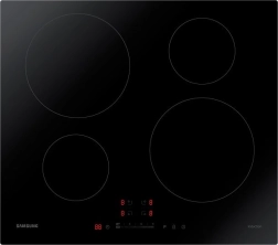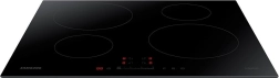 La table de cuisson Samsung, dotée de commandes tactiles numériques et de quatre zones rondes, permet un réglage de température simple et rapide pour cuisiner.