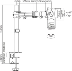 Optimisez votre espace de travail avec un support de bureau pour moniteur durable, au revêtement poudre noir. Grâce à la rotation à 360° (pivot) et à l’inclinaison ±45°, trouvez facilement l’angle idéal pour le travail, le jeu et le visionnage de contenus. La construction métallique robuste et la fixation par pince garantissent stabilité et sécurité.