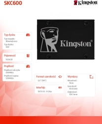Le SSD Kingston KC600 est doté d'un format 2,5" et d'une interface SATA 3.0, rétrocompatible avec les versions précédentes de SATA. Ce disque utilise la technologie mémoire de pointe NAND 3D TLC et propose un ensemble complet de sécurités, incluant le chiffrement matériel avec un algorithme à clé 256 bits et les technologies TCG Opal et eDrive.
