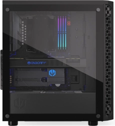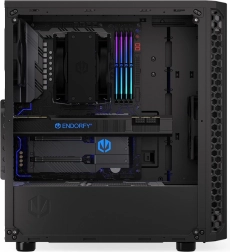 Le boîtier PC ENDORFY Signum 300 Core offre une excellente combinaison d'esthétique et de fonctionnalité. Avec des dimensions de 413×447×216 mm, il offre suffisamment d'espace pour vos composants, y compris la compatibilité avec des systèmes de refroidissement jusqu'à 240 mm en haut et 240/360 mm sur le panneau avant.