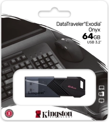 La clé USB Kingston DataTraveler Exodia Onyx offre un design ingénieux et fonctionnel avec une finition noire mate et un capuchon mobile qui protège le connecteur USB lorsque l'appareil n'est pas utilisé. Ce modèle est une solution idéale pour une utilisation quotidienne grâce à sa légèreté et à sa taille compacte.