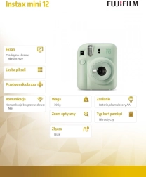 L’INSTAX Mini 12 apporte la joie de la photo analogique dans un design ludique et moderne. Une utilisation simplifiée : tournez, cadrez et déclenchez – et en un clin d’œil vous tenez votre photo instantanée au format carte de crédit dans la main. Grâce au flash automatique et à l’exposition intelligente, obtenez de beaux clichés à la maison comme en extérieur.
