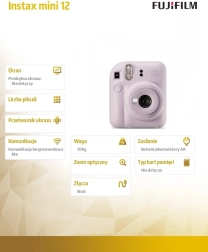 Le FUJIFILM Instax Mini 12 est un excellent choix pour tous ceux qui veulent avoir leurs souvenirs immédiatement entre les mains. Grâce à sa manipulation simple et à son impression instantanée fiable, il est idéal pour les débutants comme pour les créatifs. Son élégant coloris pastel violet souligne votre style personnel.