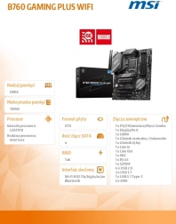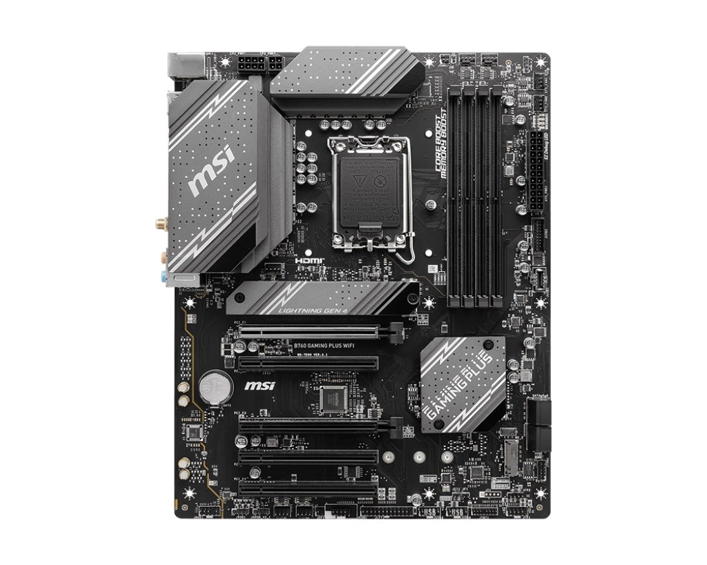 La carte mère MSI B760 Gaming Plus Wifi offre un large éventail de fonctionnalités qui maximisent les performances en jeu et la stabilité du système. Sa conception robuste inclut un alimentation 12+1 Duet Rail, un renforcement du CPU et de la mémoire, garantissant la meilleure exploitation possible de vos composants.
