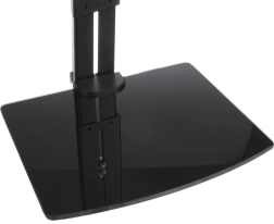 L’étagère en verre intégrée accueille un lecteur Blu‑ray, un décodeur, une console de jeu ou une tablette et aide à garder câbles et accessoires bien organisés au même endroit.