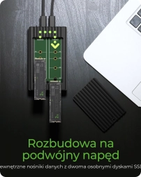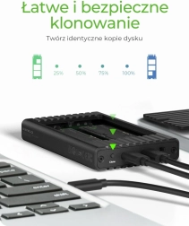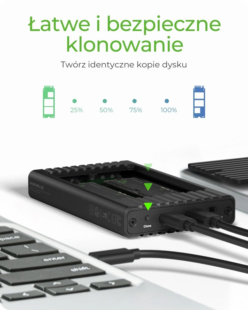 Augmentez la capacité et simplifiez les sauvegardes avec la station ICY BOX IB-2817MCL-C31. Le boîtier double M.2 NVMe permet d’installer simultanément deux SSD et de les cloner d’une simple pression sans ordinateur. Grâce à l’interface USB 3.2 Gen 2, les vitesses de transfert atteignent jusqu’à 10 Gb/s pour une copie rapide et un travail fluide sur les données.