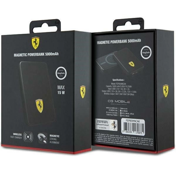 La batterie externe MagSafe avec logo Ferrari combine un design exclusif et des spécifications techniques de pointe, ce qui en fait un choix idéal pour ceux qui apprécient la qualité et le luxe.