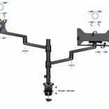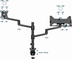 Faites de l’ordre sur votre bureau et adoptez une posture plus saine avec le bras double capable de porter facilement un moniteur 17–32" et un ordinateur portable jusqu’à 17,3". Grâce au réglage ergonomique de la hauteur, de la profondeur et de l’inclinaison, vous adaptez vos écrans en quelques secondes. Fixation VESA 75×75 et 100×100, capacité 8 kg par bras, gestion des câbles intégrée et montage par pince ou passe‑câbles pour une stabilité optimale et un espace de travail net.