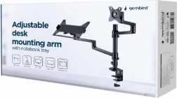 Le support de bureau réglable GEMBIRD combine un bras pour moniteur et un plateau pour ordinateur portable, offrant une solution ergonomique et peu encombrante pour un bureau moderne. Les bras s’étendent, s’inclinent et pivotent en douceur, afin d’ajuster facilement la hauteur et la distance idéales et de réduire la fatigue du cou et des yeux.