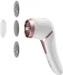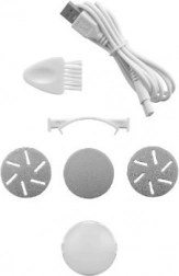 La lime électrique pour talons Concept PN3000 est fournie avec 3 disques interchangeables pour différents types de soins. L’accessoire fin convient aux zones sensibles, le moyen est idéal pour un usage quotidien et le gros grain pour la peau sèche et durcie. Les orifices à l’intérieur des embouts servent à aspirer les peaux abrasées.