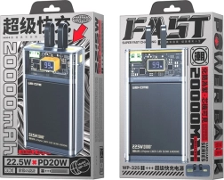 Batterie externe WEKOME Vanguard Series élégante et résistante, capacité 20000 mAh, offrant une charge ultra‑rapide PD 20 W et QC 22,5 W, deux câbles intégrés USB‑C et Lightning et un écran LED pour suivre l’énergie restante. Grâce à ses protections avancées, elle recharge en toute sécurité plusieurs appareils à la fois, et ses dimensions compactes facilitent le transport.