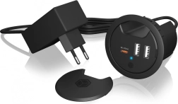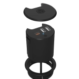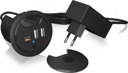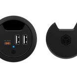 L’installation est extrêmement simple : il suffit de l’insérer dans un trou standard de 60 mm sans outil. Pour les plateaux avec un trou de 80 mm, utilisez la bague d’adaptation IB-HUBA001. Un capuchon de protection est inclus pour couvrir les connecteurs contre la poussière et les saletés et affleurer la surface du bureau lorsqu’aucun appareil ne charge.