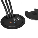 Faites de l’ordre sur votre bureau et gardez l’alimentation toujours à portée de main. Cette station de charge de bureau s’intègre discrètement dans le plateau et offre une charge rapide et fiable pour vos téléphones, tablettes et écouteurs. Le port USB‑C prenant en charge Power Delivery 3.0 et Quick Charge fournit jusqu’à 27 W, tandis que deux ports USB‑A délivrent au total jusqu’à 10 W pour les accessoires.