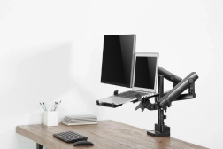 Support ergonomique et flexible pour moniteur et ordinateur portable, qui assure l’organisation idéale de votre bureau et augmente votre productivité.