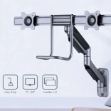 La gestion des câbles intégrée garantit un espace de travail organisé et soigné. Le vérin à gaz durable et réglable convient aux moniteurs pesant jusqu’à 8 kg, assurant une fixation sûre et une grande flexibilité lors de l’installation. Le support est compatible avec presque tous les moniteurs LCD jusqu’à 32 pouces.