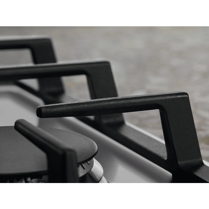 Table de cuisson à gaz moderne pour une cuisine créative : brûleur rapide avec économie d’énergie jusqu’à 20 %, puissant brûleur wok 4 kW, grilles en fonte, sécurité par thermocouple (arrêt de flamme) et commande précise par boutons au design élégant slim.