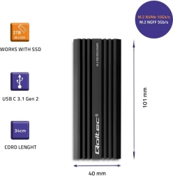 Le boîtier pour SSD M.2 de Qoltec est conçu pour offrir une large compatibilité avec différents types de SSD, y compris NVMe et SATA. Il est prévu pour les disques avec M-Key et B+M-Key aux formats 2230, 2242, 2260 et 2280.