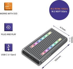 Protection élégante et robuste pour vos données précieuses. Le boîtier en aluminium de qualité aide à dissiper la chaleur et le design RGB permet d’ajuster les couleurs selon vos préférences. Son format compact facilite le transport et assure une protection fiable contre les dommages.