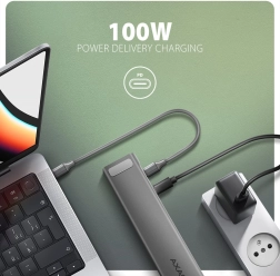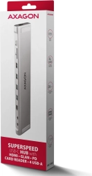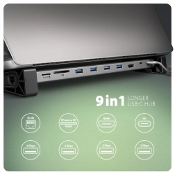 AXAGON HMC-10HLS LONGER apporte une solution d’accueil universelle 9‑en‑1 pour les appareils modernes avec USB‑C. Connectez un moniteur jusqu’en 4K/60 Hz, quatre périphériques USB, un réseau filaire via GLAN et utilisez le lecteur SD/microSD pour un transfert de données rapide. Le port USB‑C PD 100 W alimente et recharge l’ordinateur portable, sans perdre de port.