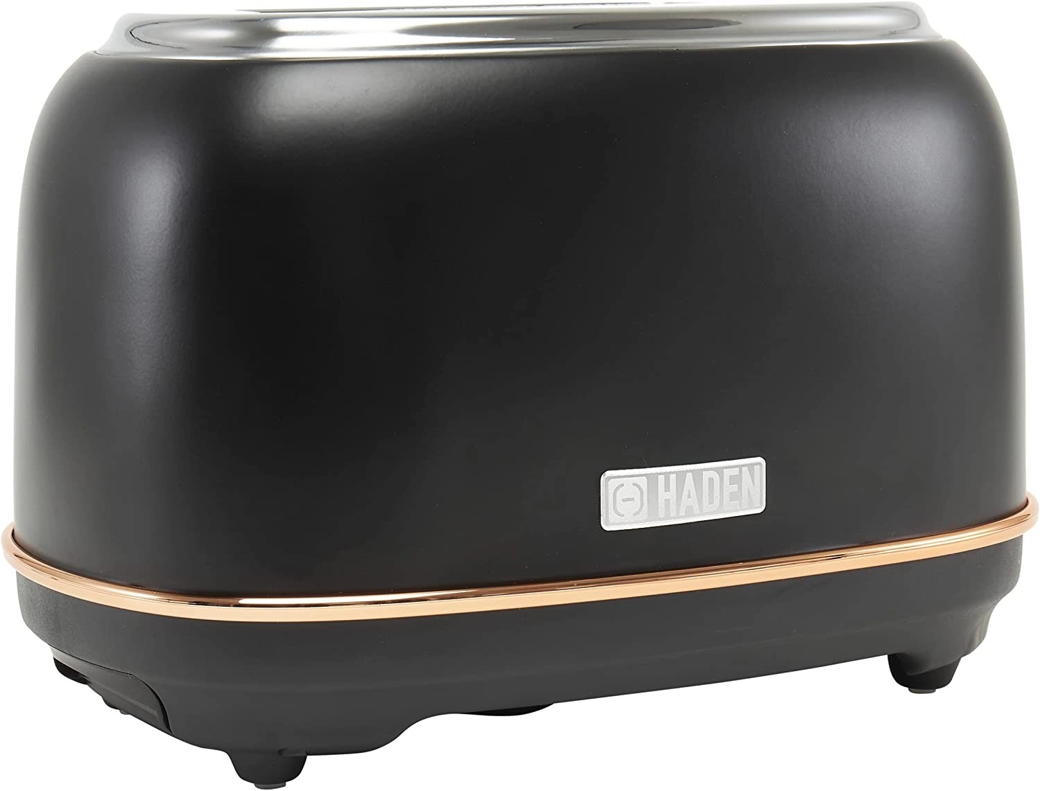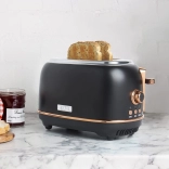 Le grille‑pain élégant HADEN Heritage en finition noir‑cuivré allie design raffiné et fonctions pratiques pour un usage quotidien. Grâce à ses larges fentes, il accepte même les tranches épaisses, tandis que le centrage du pain assure une dorage uniforme. Il offre 6 niveaux de brunissage, les fonctions décongélation, réchauffage et arrêt immédiat. Arrêt automatique, tiroir ramasse‑miettes et pieds antidérapants facilitent une utilisation sûre et propre, même dans les petites cuisines.