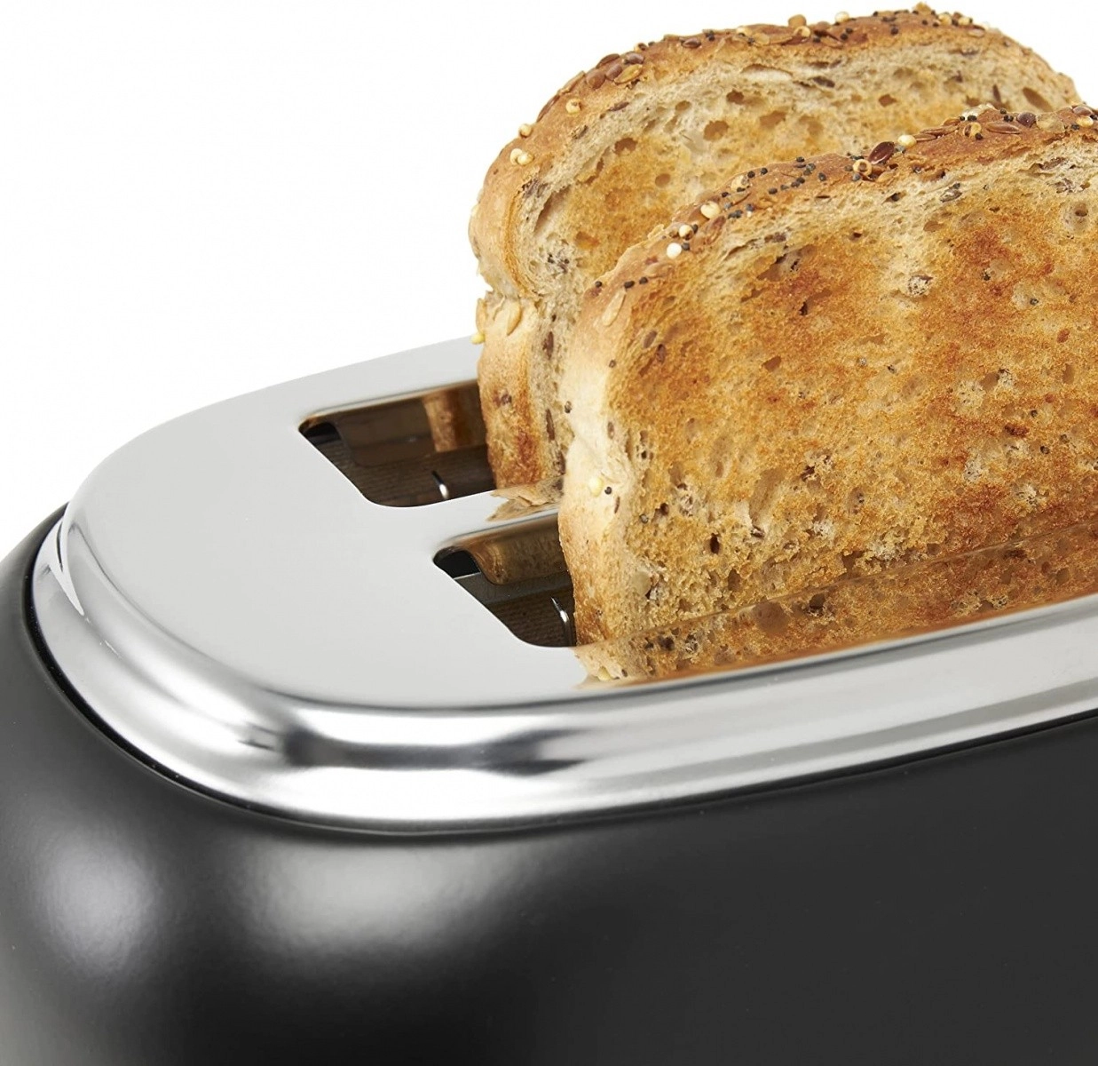 Les commandes intuitives proposent 6 niveaux de réglage du brunissage et des fonctions pratiques : décongélation pour le pain surgelé, réchauffage sans brunir davantage et cancel pour arrêter immédiatement. La sécurité et le confort sont renforcés par l’arrêt automatique, un tiroir ramasse‑miettes pour un nettoyage facile et un range‑câble qui garde le plan de travail net.