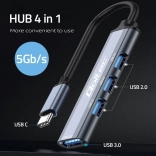 Augmentez la connectivité de votre appareil et branchez plusieurs accessoires en même temps – souris, clavier, imprimante, clé USB ou dongles sans fil. Le hub USB‑C 4‑en‑1 propose un agencement des ports pratique, est léger et portable et se glisse facilement dans une poche ou un sac. Sa construction en aluminium robuste améliore la durabilité et la dissipation thermique.