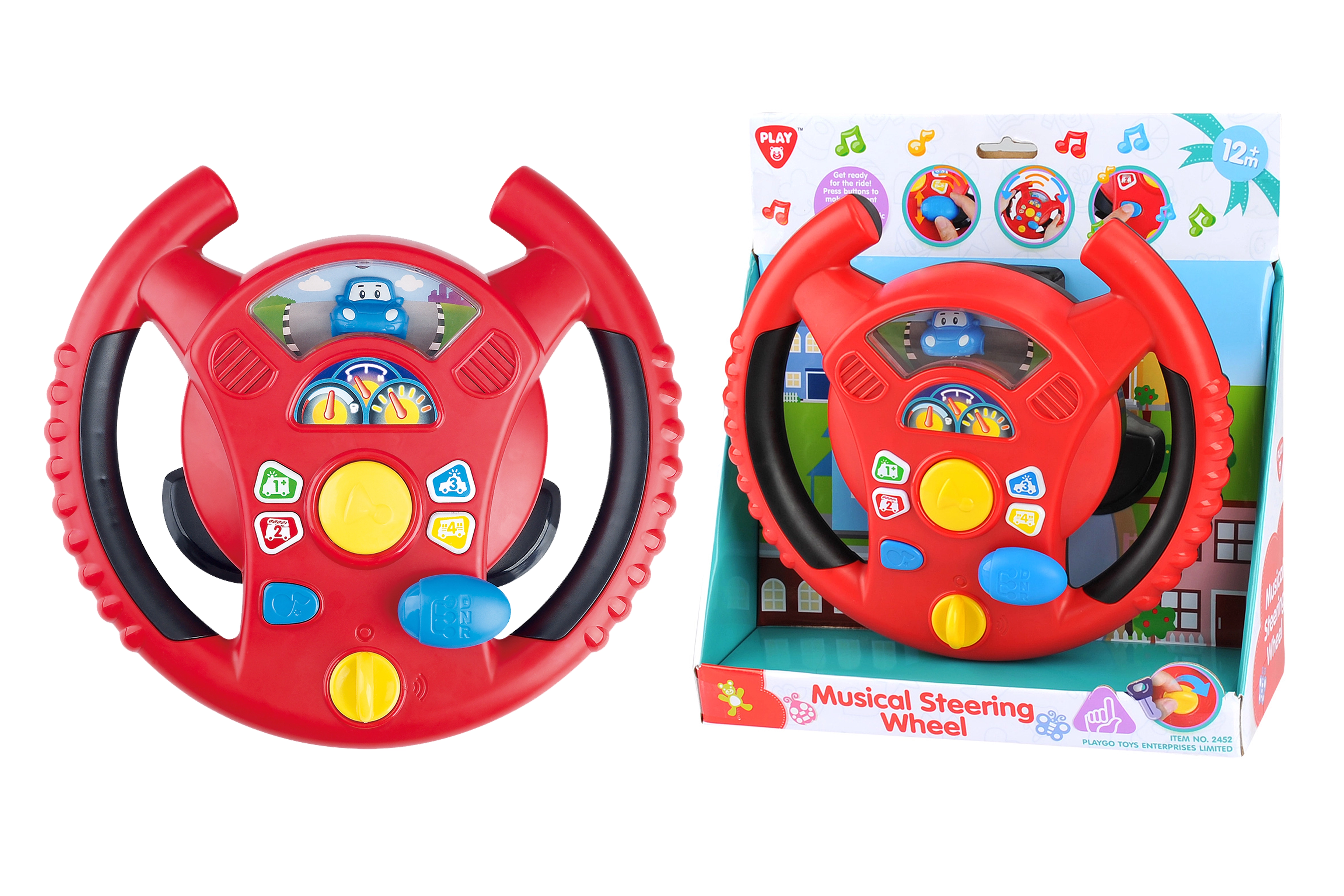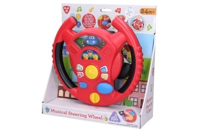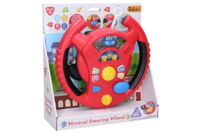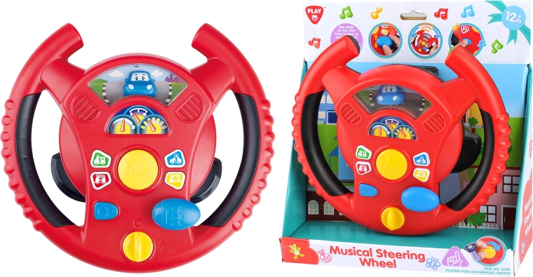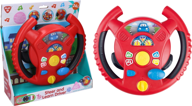 Le volant interactif Playgo offre aux enfants un jeu de conduite amusant dans une mini-ville. Un interrupteur rotatif au bas du volant sert à l’allumer, au centre se trouve le klaxon, à droite un levier de vitesses pour les sons de conduite, et sur la jante du volant de petits boutons avec des tonalités et des mélodies. Les enfants profiteront d’effets réalistes rappelant une vraie voiture tout en développant leur coordination et leur imagination.