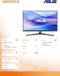 L’ASUS VU279CFE combine un design élégant sans bords avec des fonctionnalités pratiques pour la productivité au quotidien. La dalle IPS garantit des couleurs précises et une excellente lisibilité, tandis que la fréquence de 100 Hz avec 1 ms MPRT améliore la fluidité des mouvements lors de la navigation, dans les applications bureautiques et pour le jeu léger.