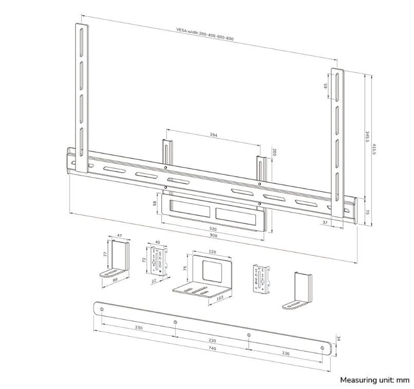 Le cadre VESA peut être ajusté en largeur et en hauteur dans les plages 200/400/600/800 pour s’adapter facilement à différentes tailles d’écrans.