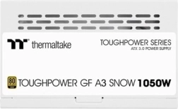 La Thermaltake Toughpower GF A3 SNOW 1050W est une alimentation fiable et économe en énergie au design blanc élégant, idéale pour les PC haute performance. La certification 80 PLUS Gold garantit des pertes réduites et un échauffement moindre, tandis que le PFC actif veille à la stabilité de la tension et à la protection des composants.