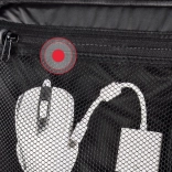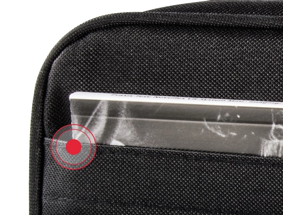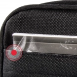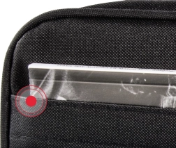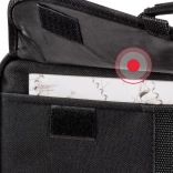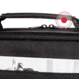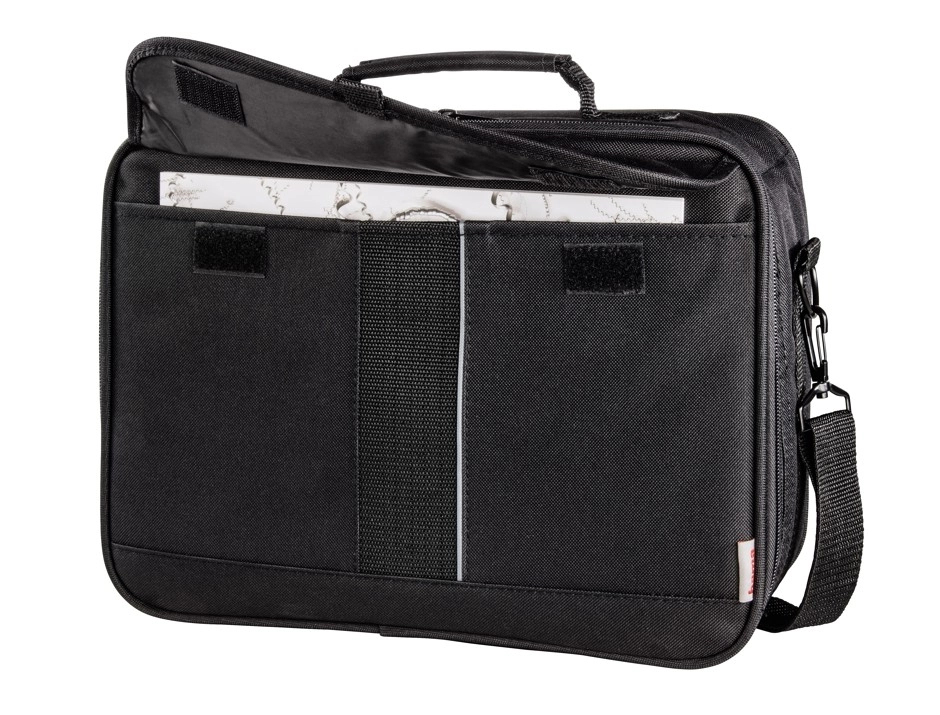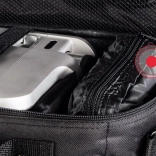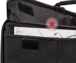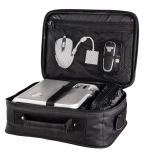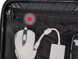 La cloison coulissante et amovible adapte l’espace intérieur au projecteur et à ses accessoires. Une poche séparée pour documents garde tout bien en place.