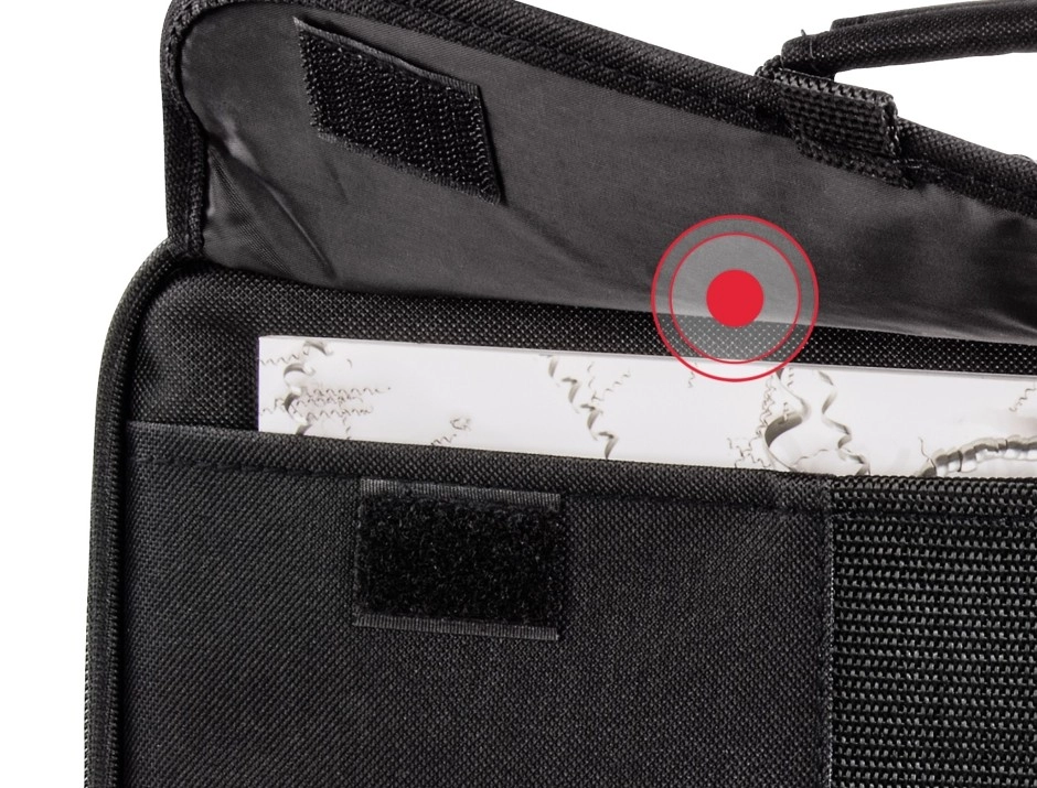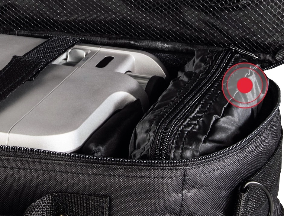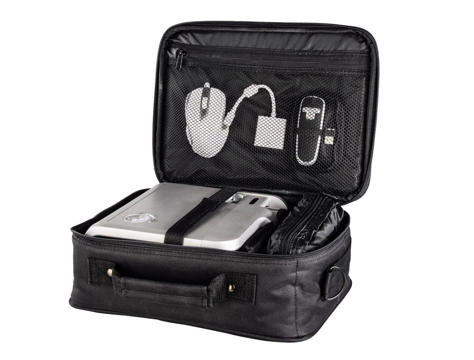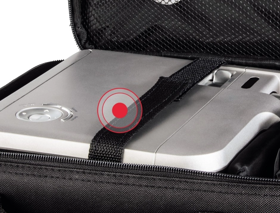 L’intérieur bien pensé avec une cloison coulissante et amovible permet d’adapter facilement l’espace au projecteur et à ses accessoires. Une poche séparée pour documents, une poche intérieure en maille avec fermeture éclair dissimulée et une poche extérieure avant assurent un rangement clair de tous les essentiels – des câbles à la télécommande.