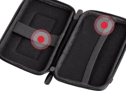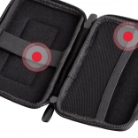 Ce boîtier rigide est équipé d’un élastique spécial qui maintient fermement le disque en place. Outre le disque, il peut également accueillir de petits accessoires tels qu’une clé USB, un câble de données ou des cartes mémoire. Grâce à la poche en maille extensible, tout est bien organisé et facilement accessible. Pour plus de confort, l’étui se ferme à l’aide d’une fermeture éclair bidirectionnelle.