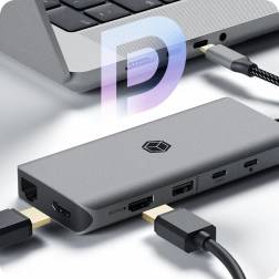 Les deux sorties HDMI permettent un affichage net jusqu’à 8K/30 Hz sur un moniteur, ou de faire fonctionner simultanément 2× 4K (jusqu’à 60/30 Hz selon les capacités de l’hôte). La technologie DisplayPort Alt Mode assure une transmission directe, stable et de haute qualité de l’image et du son sans installation de pilotes.