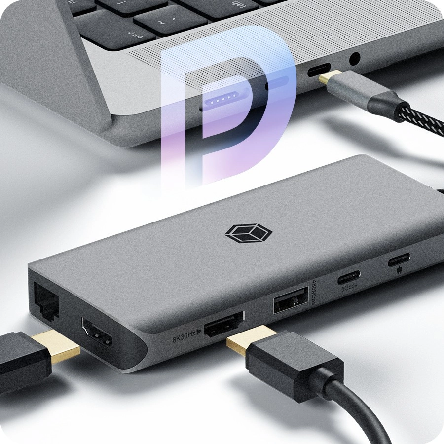 La prise en charge Power Delivery 100 W alimente l’ordinateur portable même à pleine charge tout en gérant tous les périphériques connectés. Il suffit de brancher – plug & play pour Windows, macOS et ChromeOS.