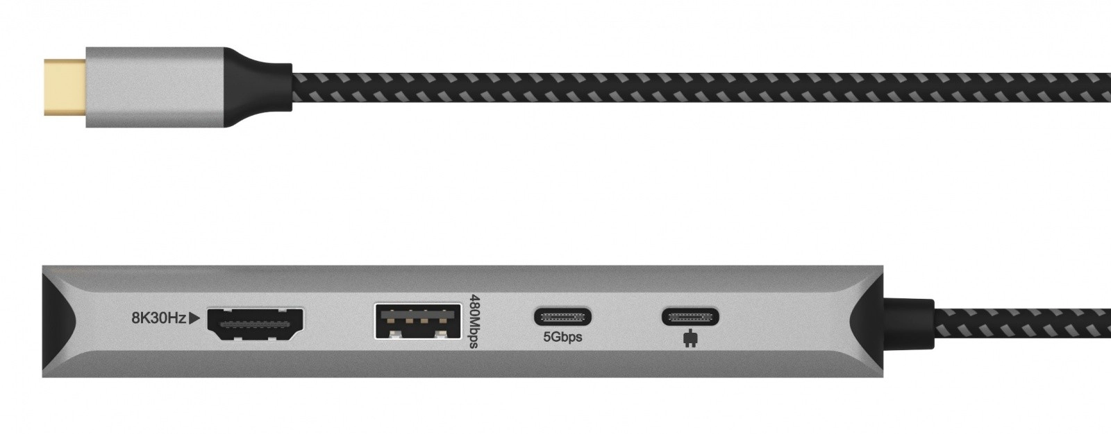 - 1× 8K à 30 Hz ; 2× 4K jusqu’à 60/30 Hz (selon les capacités de l’appareil hôte)