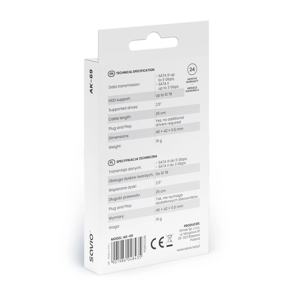 L’adaptateur est compatible avec des disques jusqu’à 10 To, idéal pour travailler avec de gros volumes de données. Grâce à ses dimensions compactes et à son faible poids, il est facile à transporter et adapté à un usage quotidien.