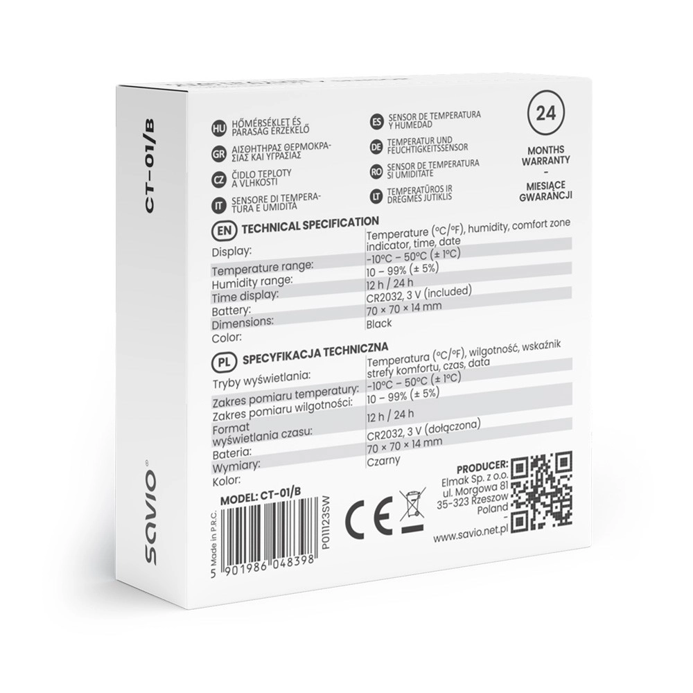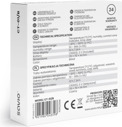 Maintenez un climat idéal à la maison comme au travail. Le SAVIO CT-01 mesure avec précision la température et l'humidité relative et affiche également sur le grand LCD l'heure et la date. L’indicateur de confort intuitif indique rapidement si l’environnement est sec, confortable ou trop humide.
