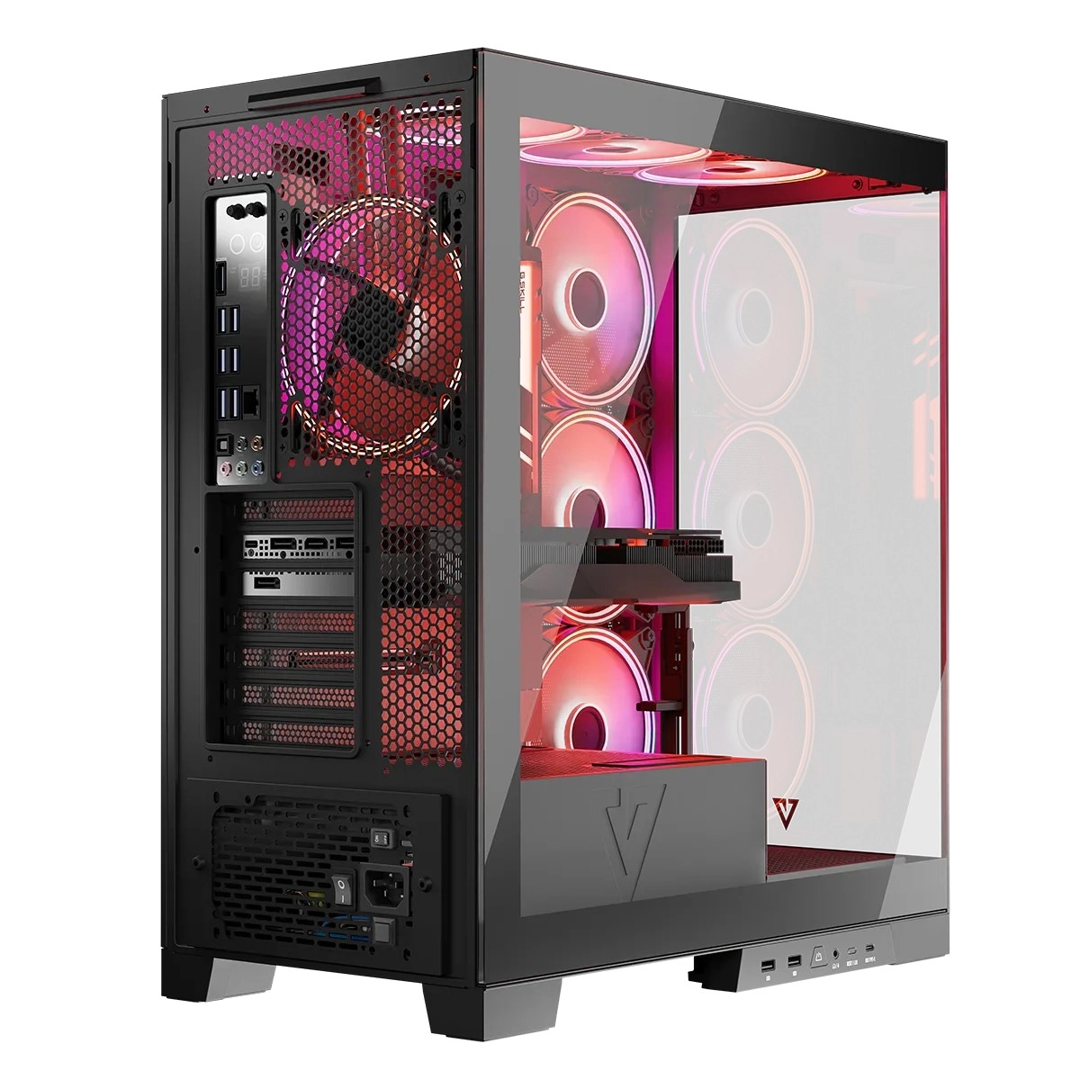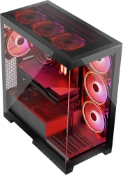 Volcano Space est un boîtier PC moderne pour joueurs exigeants et passionnés souhaitant mettre en valeur leurs composants. Les panneaux avant et latéral en verre trempé offrent un look « showcase » épuré et, avec les 4× 140 mm ARGB, subliment toute configuration. Grâce au support des cartes mères à connecteurs inversés (ex. MSI Project Zero, ASUS B760M‑BTF), vous dissimulez facilement le câblage pour un intérieur propre et esthétique.