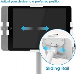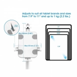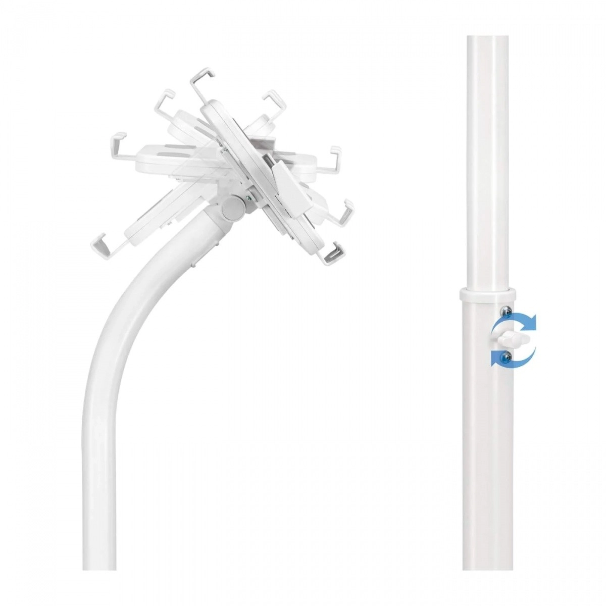 Pied autoportant à hauteur réglable pour tablettes de 7,9" à 11", rotation à 360°, inclinaison de +20° à -110°, blanc