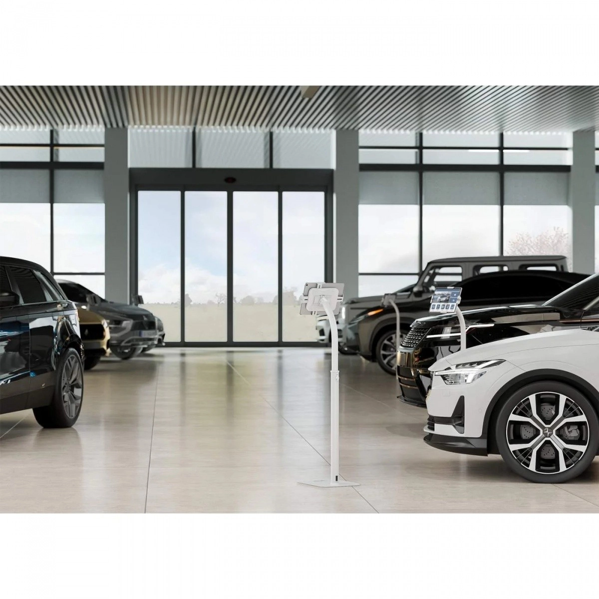Protégez votre tablette de valeur contre le vol et les manipulations non autorisées, notamment lorsque vous devez la laisser sans surveillance. Vissez le pied au sol — tous les éléments de fixation nécessaires sont inclus. Une clé est également fournie pour verrouiller les pinces et sécuriser la tablette.