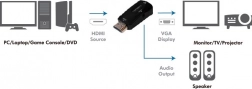 L’adaptateur inclut également un jack stéréo 3,5 mm pour la transmission séparée du son vers des haut-parleurs ou des écouteurs. Installation plug & play – aucun pilote requis, il suffit de brancher et d’utiliser.
