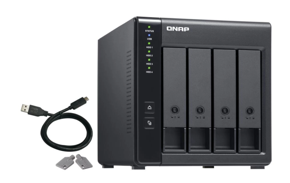 Le boîtier d’extension RAID TR-004 avec interface USB 3.0 permet d’augmenter la capacité de stockage d’un serveur QNAP NAS ou d’un ordinateur. Le TR-004 peut également être utilisé comme stockage externe connecté directement (DAS) : il suffit de le brancher sur le port USB de l’appareil pour accéder à ses disques. Le châssis TR-004 intègre quatre baies SATA de 3,5 pouces et prend en charge plusieurs options de configuration RAID. Associé à une connexion USB 3.0 Type‑C, il constitue une solution fiable et sécurisée pour étendre l’espace de stockage.